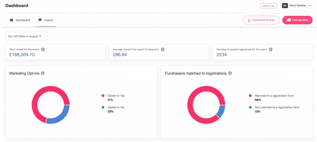 Our new feature continues in this radically transparent fashion with a dashboard of simple charts and figures meaning no more filtering and searching through all your data to get the information you need. Simply choose the event, quickly see the performance, easily download and share with your team!